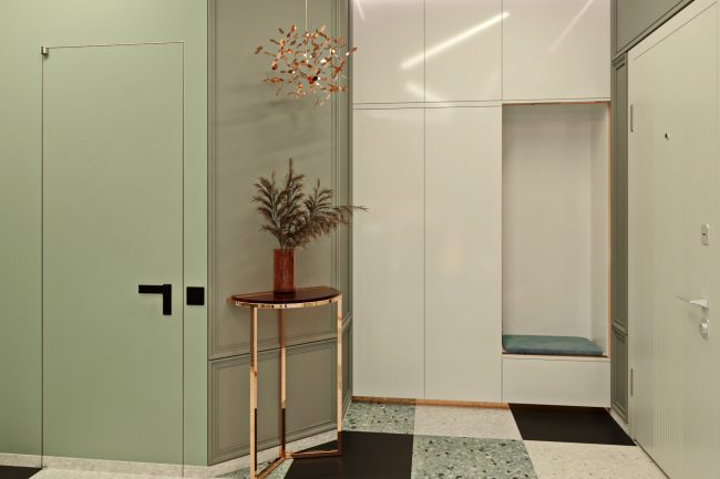 Moldings on the walls add classic touches and elegance to the interior, while highlighting the modern character of the space. They give the room texture and visual interest, balancing functionality and aesthetics.