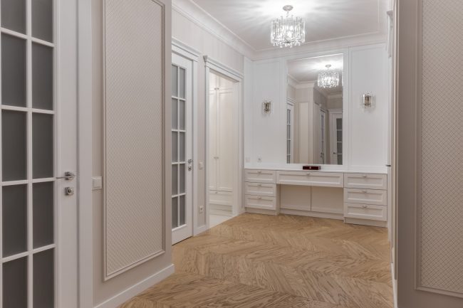 The apartment design in classic style attracts with its harmony. Subdued luxury and elegant simplicity will surely appeal to admirers of refined tastes. Perfect perfection of the interiors is achieved through strict adherence to the principles inherent in true classics: the use of expensive natural materials; a calm color palette; symmetry and order; accuracy and meticulous fitting of all decorative elements; space and light.