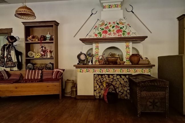 Jeden z kącików prezentuje wnętrze wiejskiego ukraińskiego domu z XIX wieku — ukraiński piec ozdobiony kwiatowym ornamentem, starodawne przedmioty codziennego użytku — gliniane i drewniane naczynia ludowe oraz meble z naturalnego drewna.
