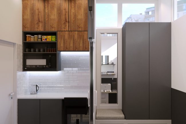 2. Naturalne Materiały: Użycie drewna, fakturowych płytek i szkła wprowadza naturalny element do industrialnego stylu, tworząc harmonijny i przytulny wystrój.