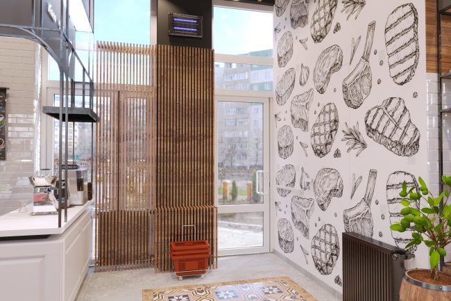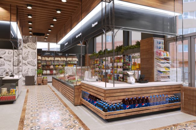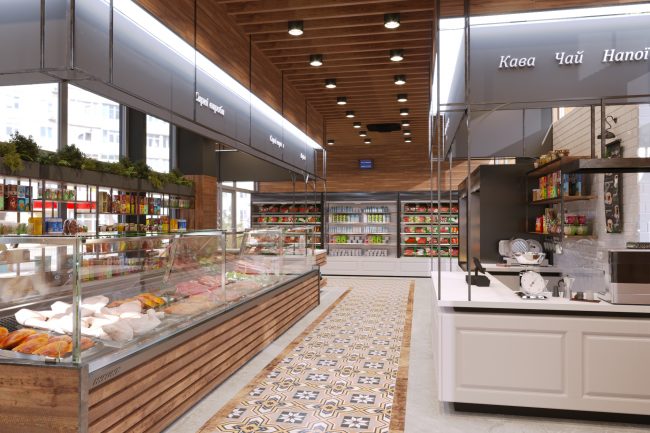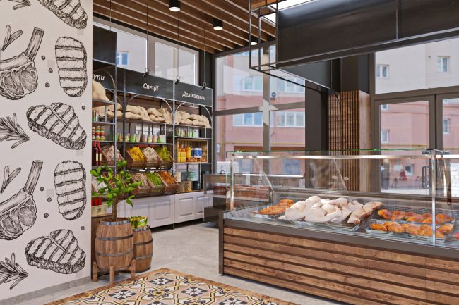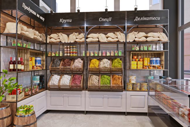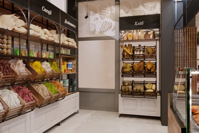 Projekt sklepu spożywczego Sitnycia w stylu loft