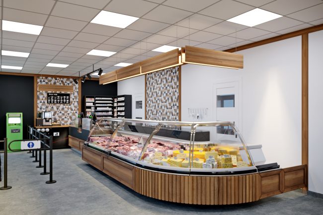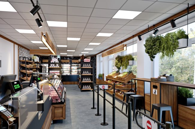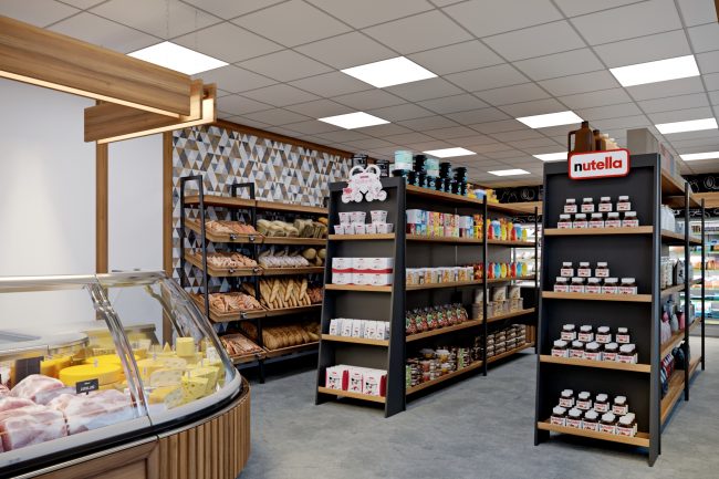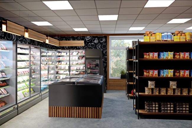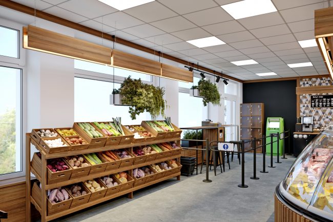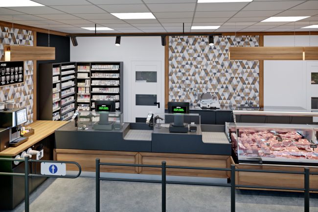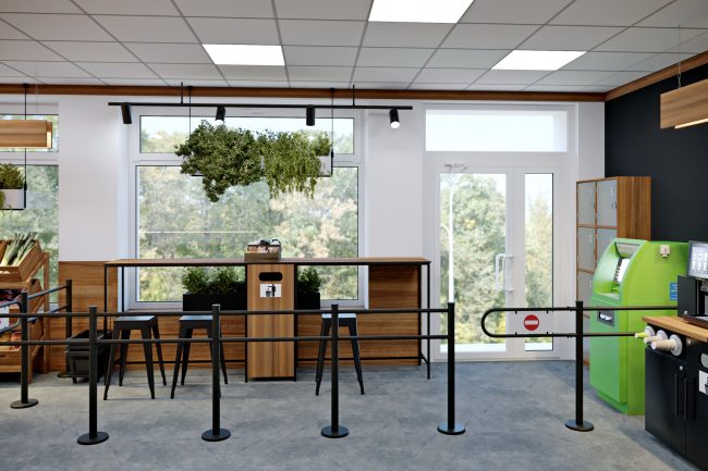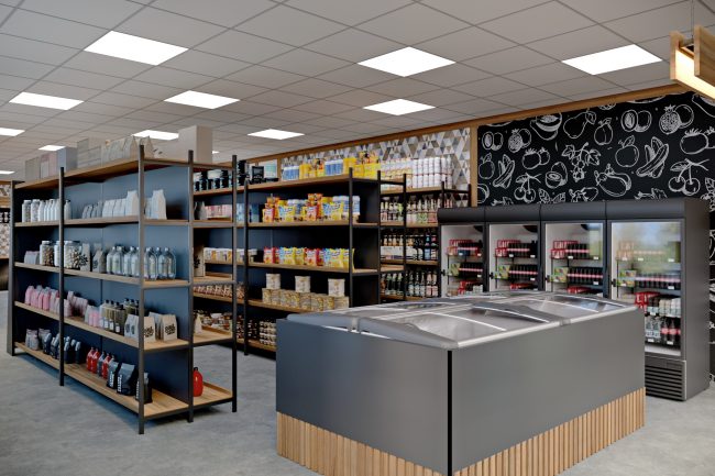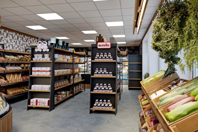Загальний дизайн простору поєднує в собі сучасний стиль та функціональність, що робить магазин привабливим як для покупців, так і для персоналу.
