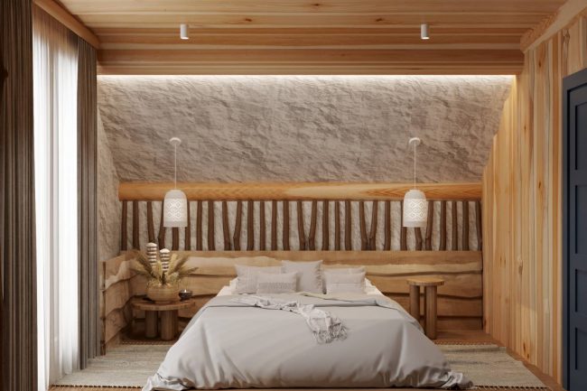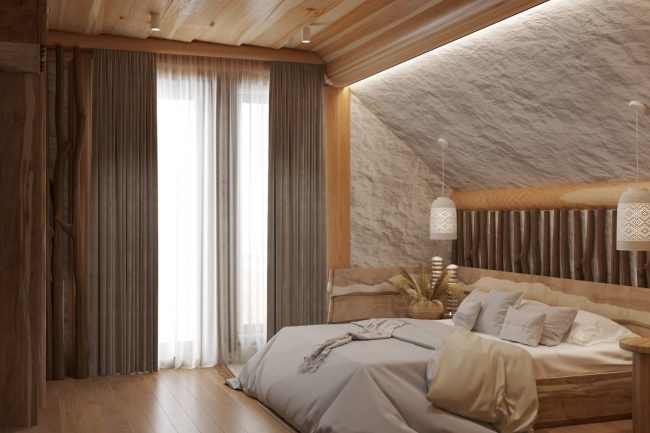 Проект дизайну спальні та кабінету в стилі соснового зрубу
