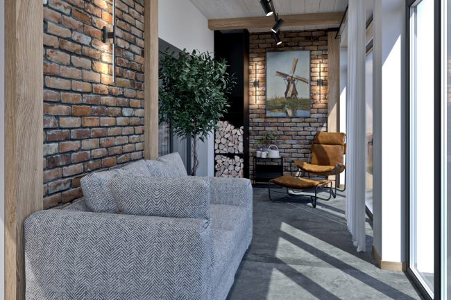 Taras jest jednym z kluczowych obszarów domu, pozwalającym cieszyć się naturą. Jest urządzony cegłą austriacką, co nadaje domowi trwałości i charakterystycznego stylu. Taras wyposażony jest w stół jadalny do rodzinnych posiłków na świeżym powietrzu oraz strefę wypoczynkową z miękkimi meblami do relaksu. Duże panoramiczne okna wychodzą na otaczającą przyrodę, otwierając zapierający dech w piersiach widok.