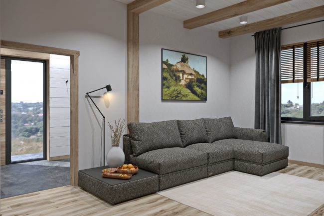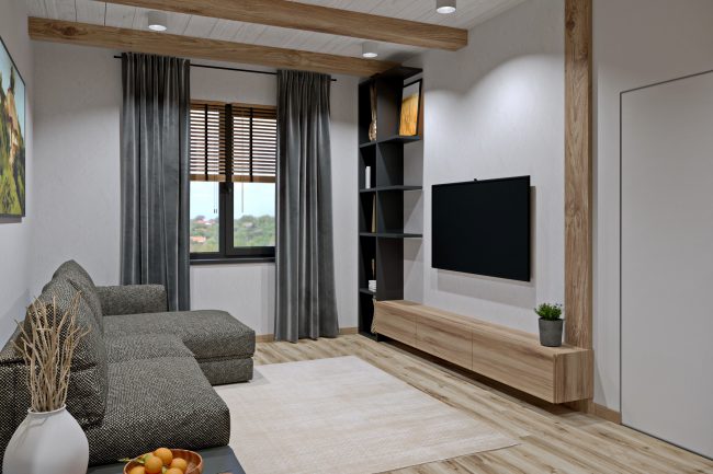Ten projekt wnętrza jednorodzinnego domu w stylu chalet łączy w sobie elementy tradycyjnego alpejskiego stylu z nowoczesnymi rozwiązaniami, zapewniającymi komfort i funkcjonalność. Głównym akcentem są naturalne materiały, takie jak drewno i kamień, które nadają domowi poczucie ciepła, przytulności oraz harmonii z otaczającą naturą.