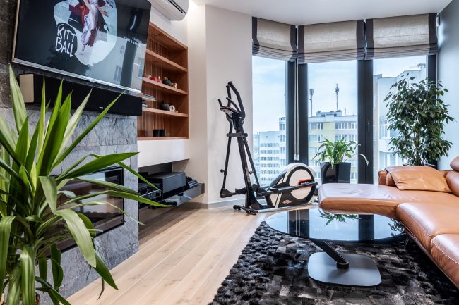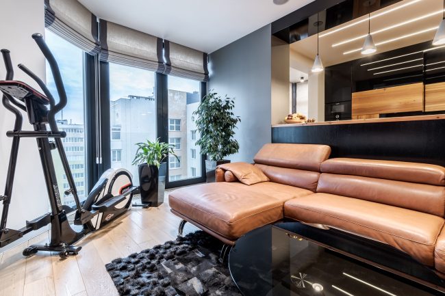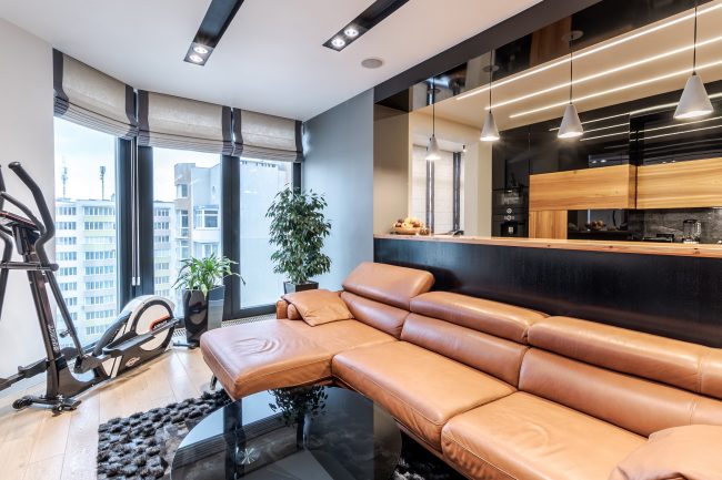 Дизайн інтер’єру цієї квартири виконано в сучасному стилі, що включає поєднання елементів хай-теку та мінімалізму, задовольняє потребу у практичності та функціональності.