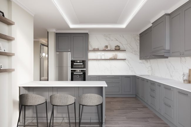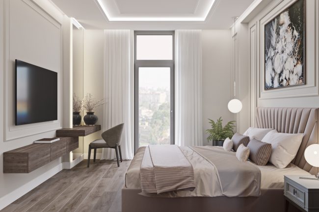 Projekt wnętrza mieszkania w stylu neoklasycznym to wyrafinowana gra elementów, które łączą w sobie klasyczny urok i nowoczesne udogodnienia. Wykorzystując eleganckie materiały i stylowe detale, stworzono przestrzeń, która zachwyca swoją elegancją i komfortem.