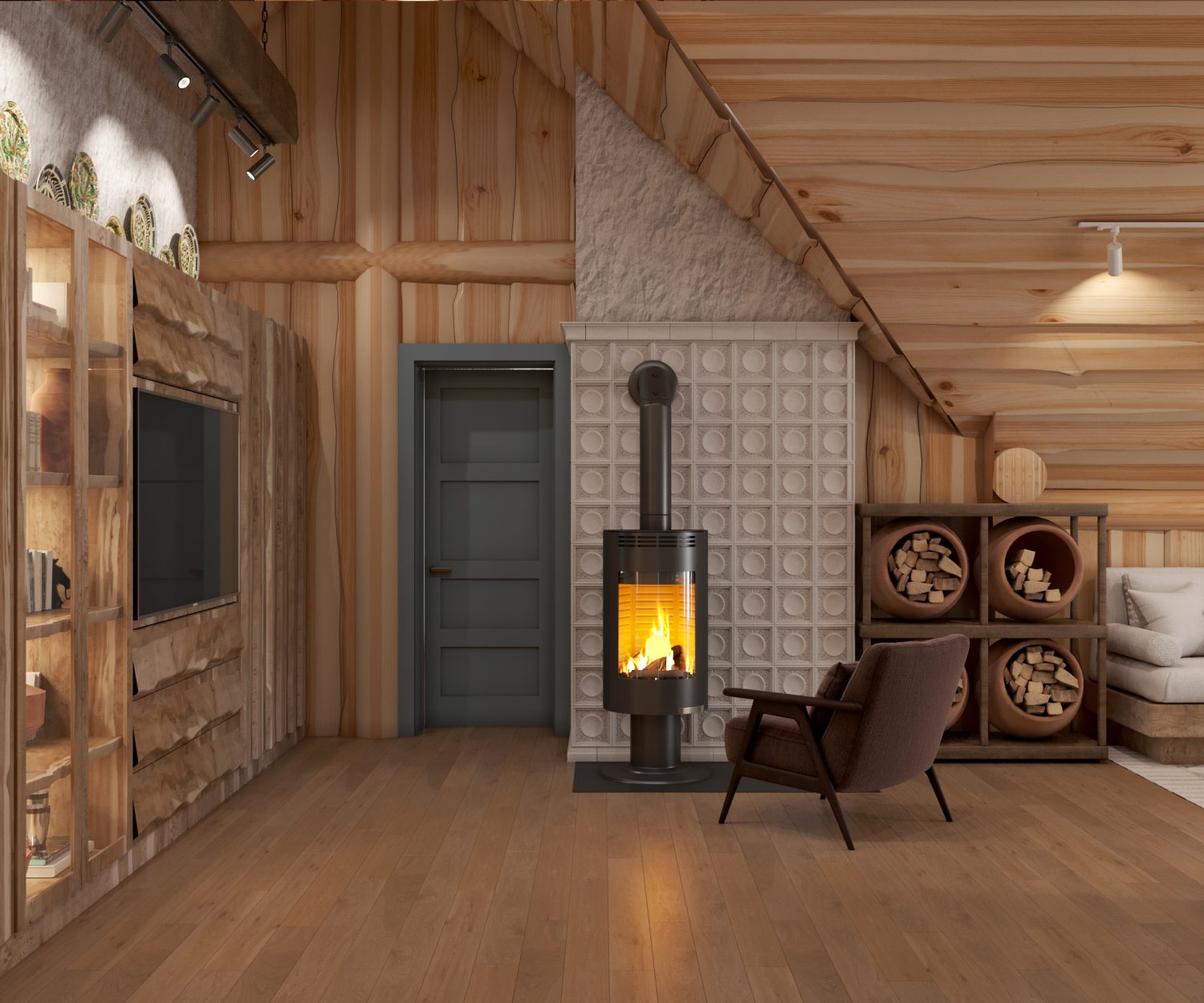 Проект дизайну спальні та кабінету в стилі соснового зрубу