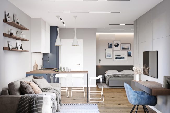 Дизайн інтерʼєру Смарт-квартири в сучасному стилі.