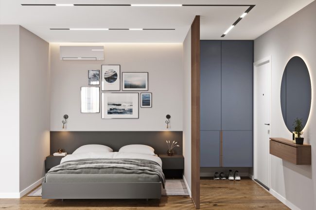 Знайомтеся зі світом затишку та інновацій у сучасних апартаментах. Дизайн інтерʼєру Смарт-квартири об’єднує функціональність та стиль, дозволяючи вам насолоджуватися кожним моментом вашого життя. Затишна спальня і вітальня з кухнею створюють єдиний гармонійний простір, а велика шафа додає зручності та організації. Ліжко, відділене перегородкою від входу, створює зону відпочинку, де ви зможете насолоджуватися спокоєм і здоровим сном.
