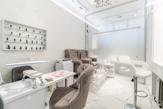 Для відвідувачів салону краси підібрано м’які крісла ніжного кавового відтінку.