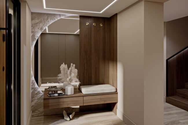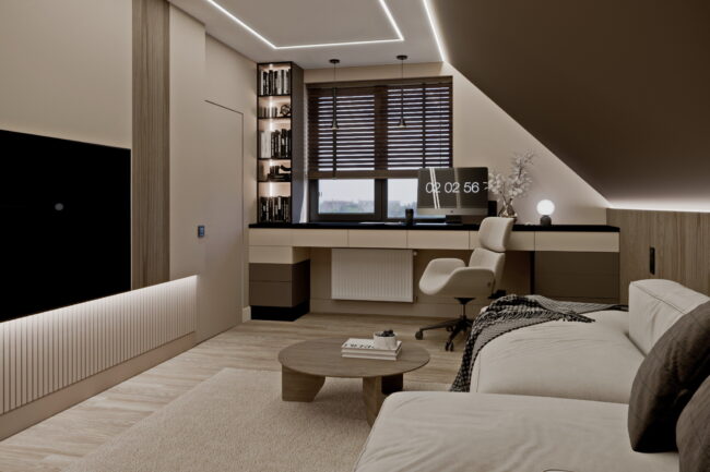 Цей затишний та стильний будинок створений для молодої пари, яка цінує комфорт, сучасний дизайн та природну гармонію. Використано теплі нейтральні відтінки, натуральні матеріали та функціональні рішення, що роблять простір максимально зручним для проживання.