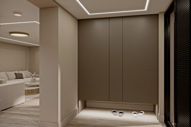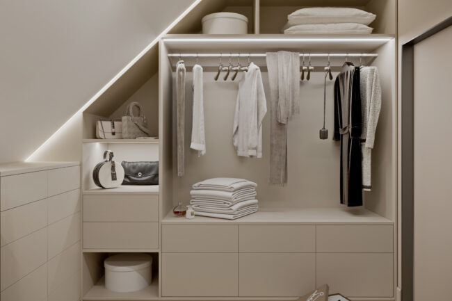 ✔ Вбудовані шафи для зберігання та м’яке сидіння для зручності.