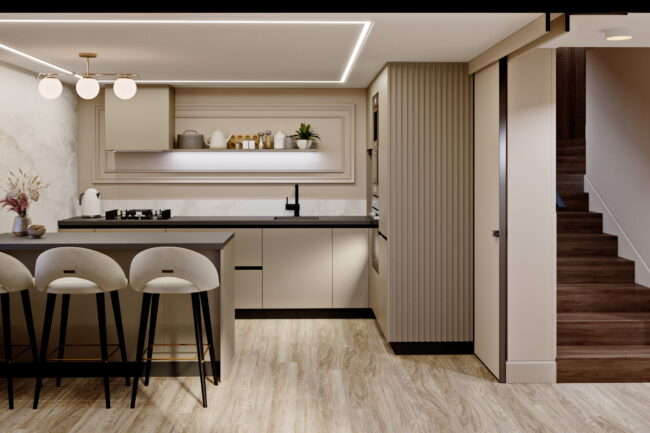 ✔ Острів з барними стільцями – ідеальне місце для сніданків та невеликих зустрічей.