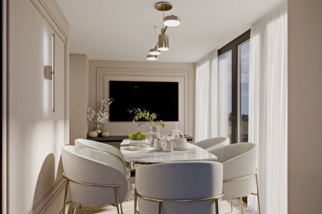 ✔ Окрема обідня зона – стіл із м’якими кріслами та видом на подвір’я.